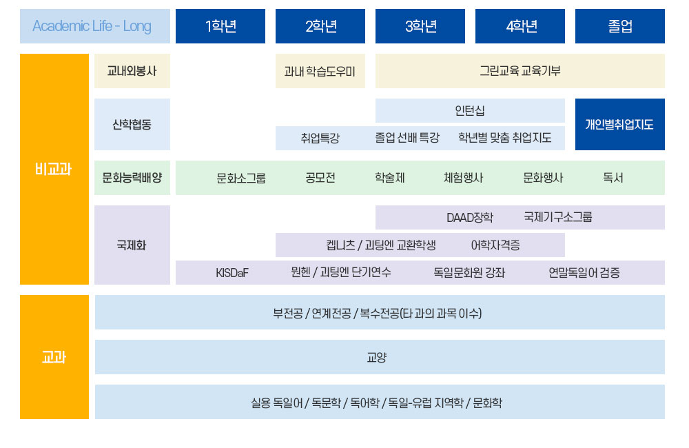 - 전공을 심화하고 연계전공이나 복수전공 등을 이수함으로써 학생들은 방송 및 언론매체, 출판계, 문화 분야(작가, 연극, 번역 등), 독일 및 유럽과 관련된 기관 및 기업체, 국내의 해외업무 분야, 해외 유학 등의 여러 가지 직업군으로의 진출할 수 있는 기회를 만들 수 있다.