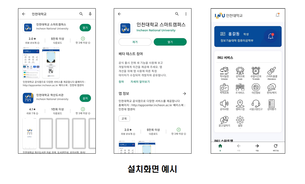 - Android : Play 스토어에서 “인천대학교 검색”